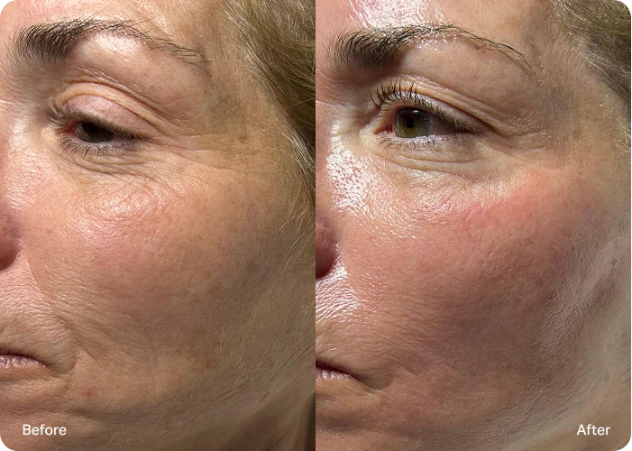 Left: Dull, uneven texture, visible fine lines. Right: Glass-skin glow, plumped, visibly smoother. 30,000ppm PDRN doesn't just hydrate - it regenerates. This is what happens when Korean pharmaceutical-grade skincare meets your face.